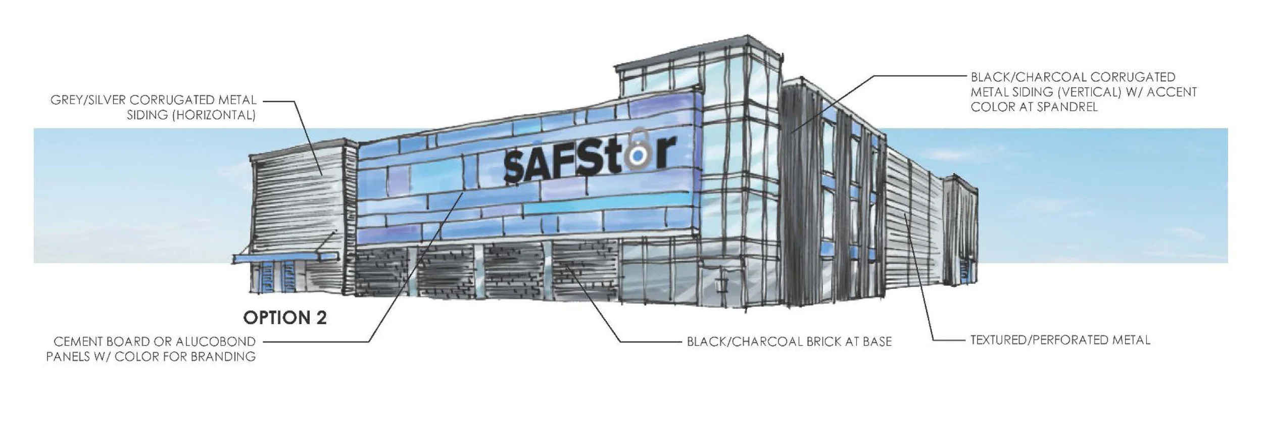 SAFStor Prototypes, pictured above, with a combination of stone, corrugated/textured/perforated metal, and cement. Design Options, pictured below.